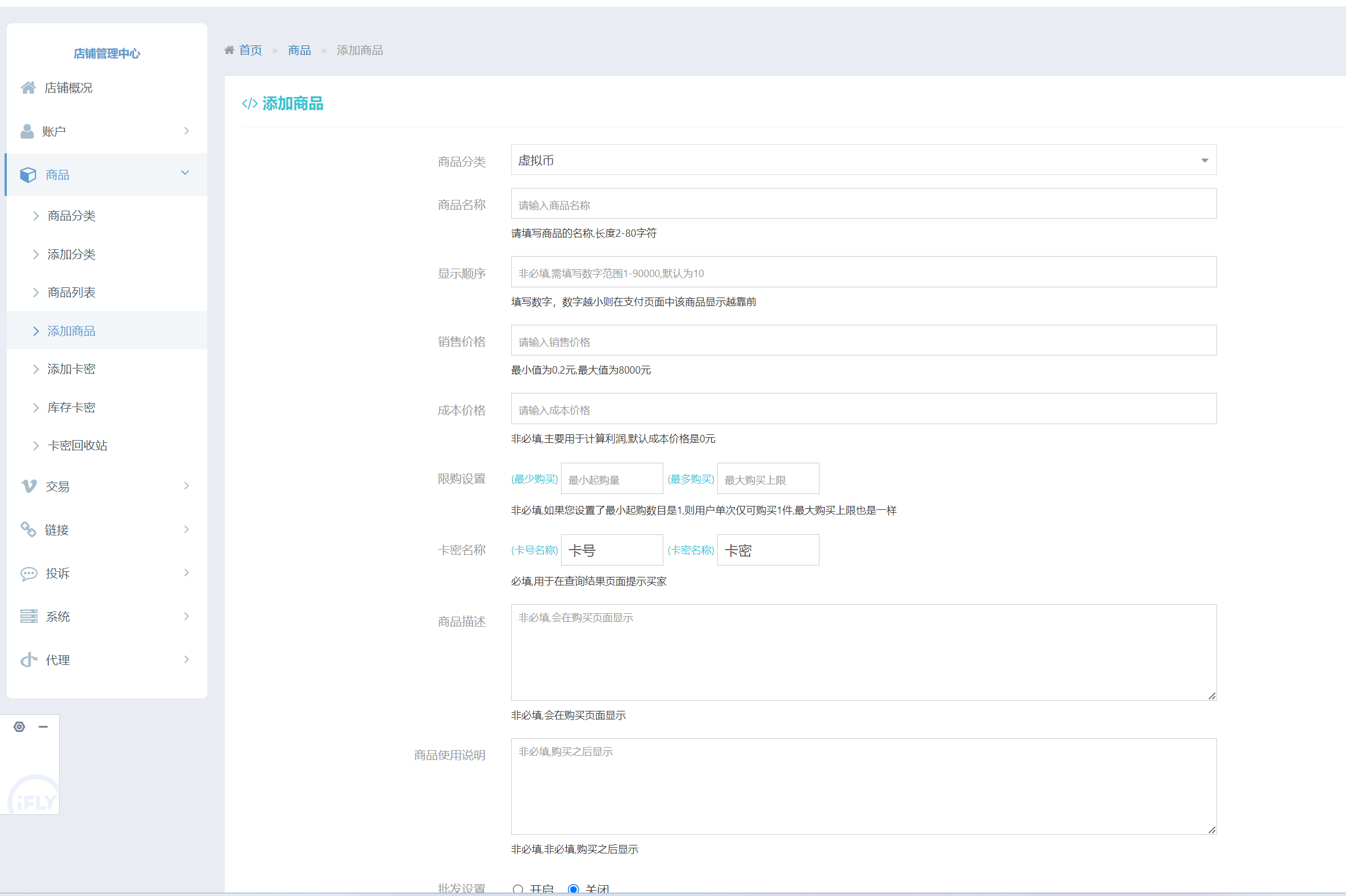 发卡平台是一个专业的软件卡密等虚拟商品在线交易平台,拥有多种兑换方式,费率低,结算快,正规企业平台一直稳定运营,24小时不间断提供自动发卡服务,打破传统购卡售卡体系,为商家提供安全、快捷、简单的售兑卡体系,灵活的系统完成全自动的销售发卡和兑卡操作。