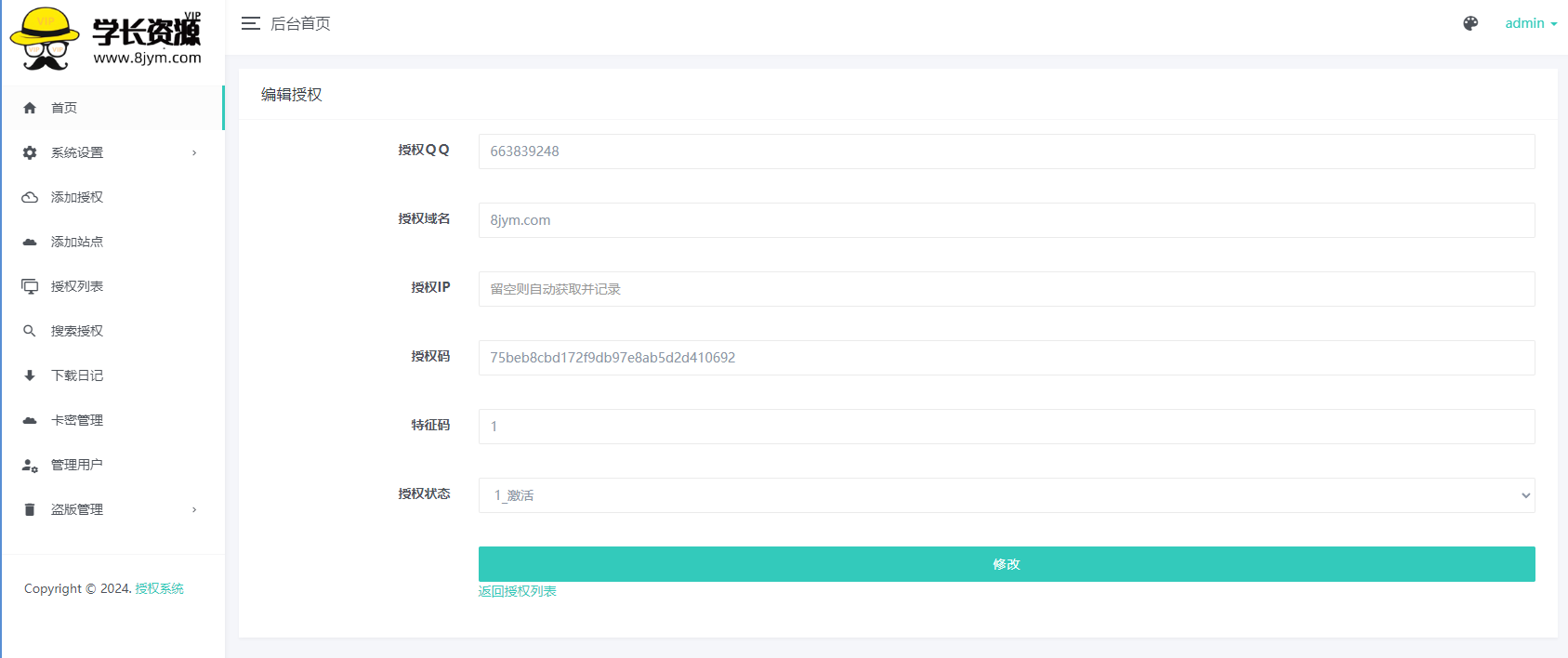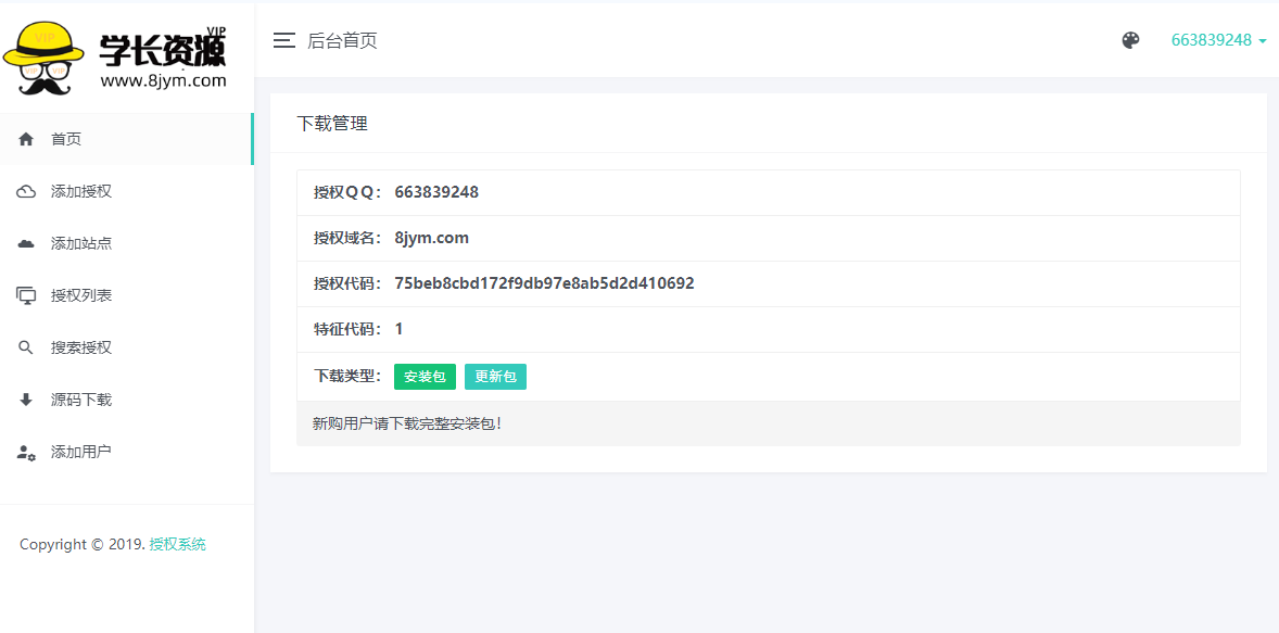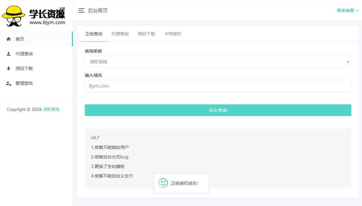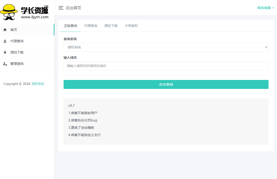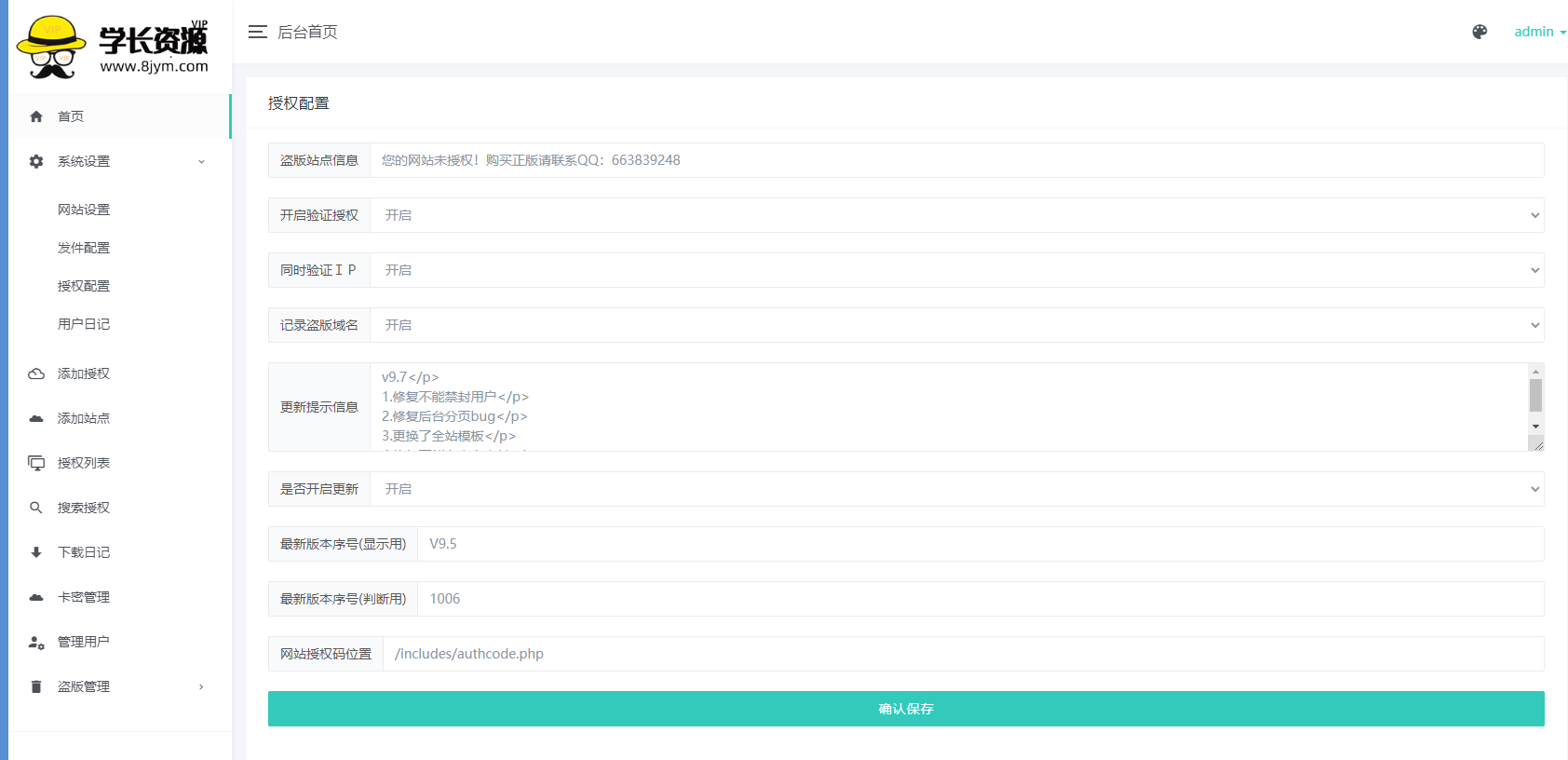 9.修复无法发送邮件问题,授权用户下载源码,接收邮件验证,自主授权通知,授权成功邮件通知,增加授权成功邮件通知,增加代理商邮件通知,