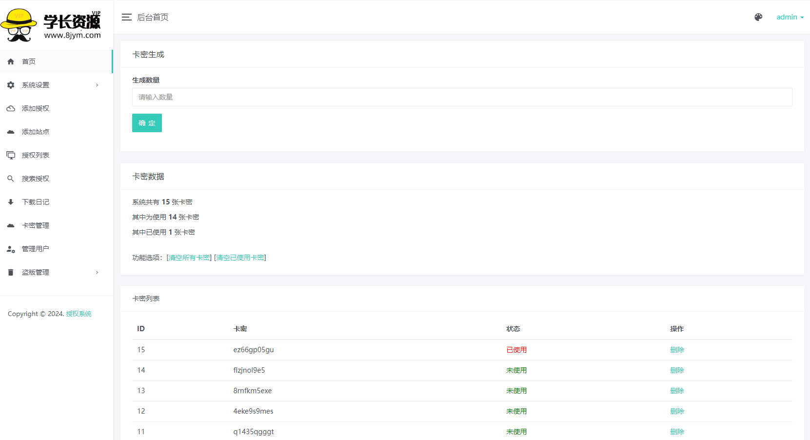 5.更新卡密在线添加授权